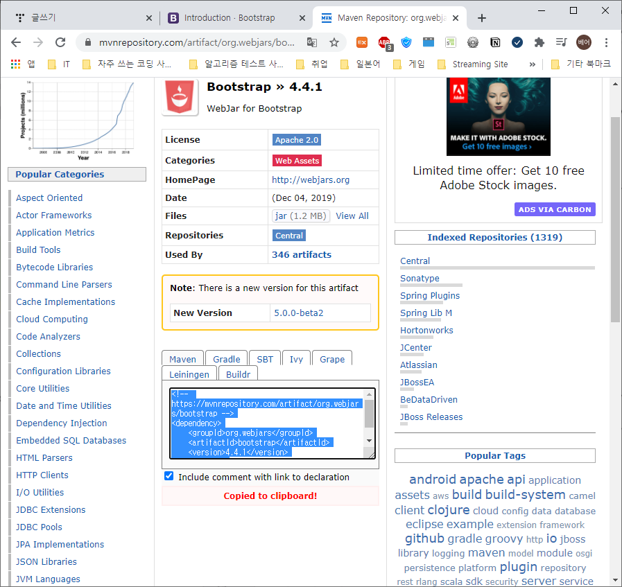 maven으로 webjar를 통해 bootstrap을 받아서 사용할 수 있다.