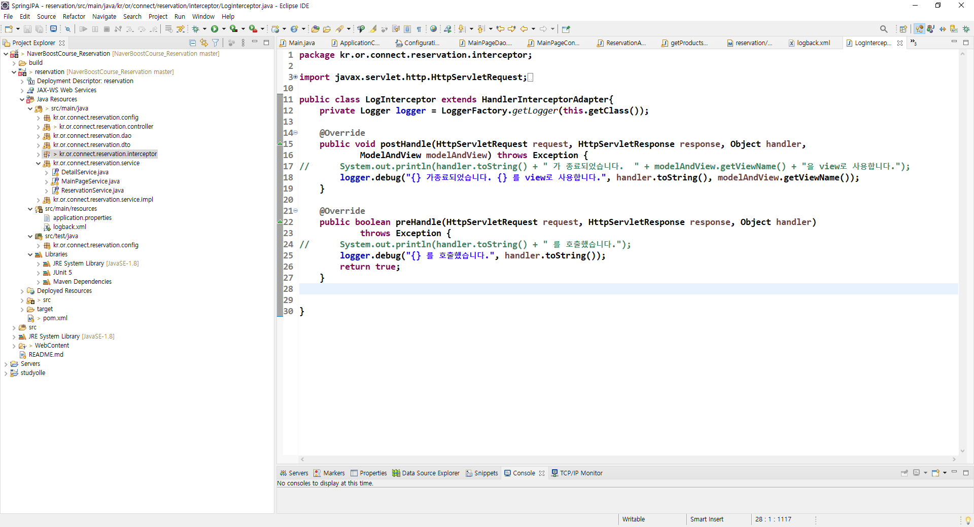 LogInterceptor.java를 아래와 같이 수정합니다.