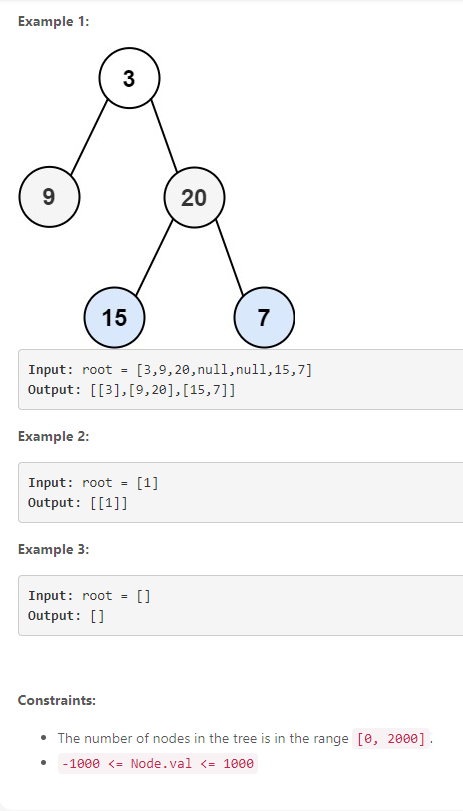 public List<List<Integer>> levelOrder(TreeNode root) {