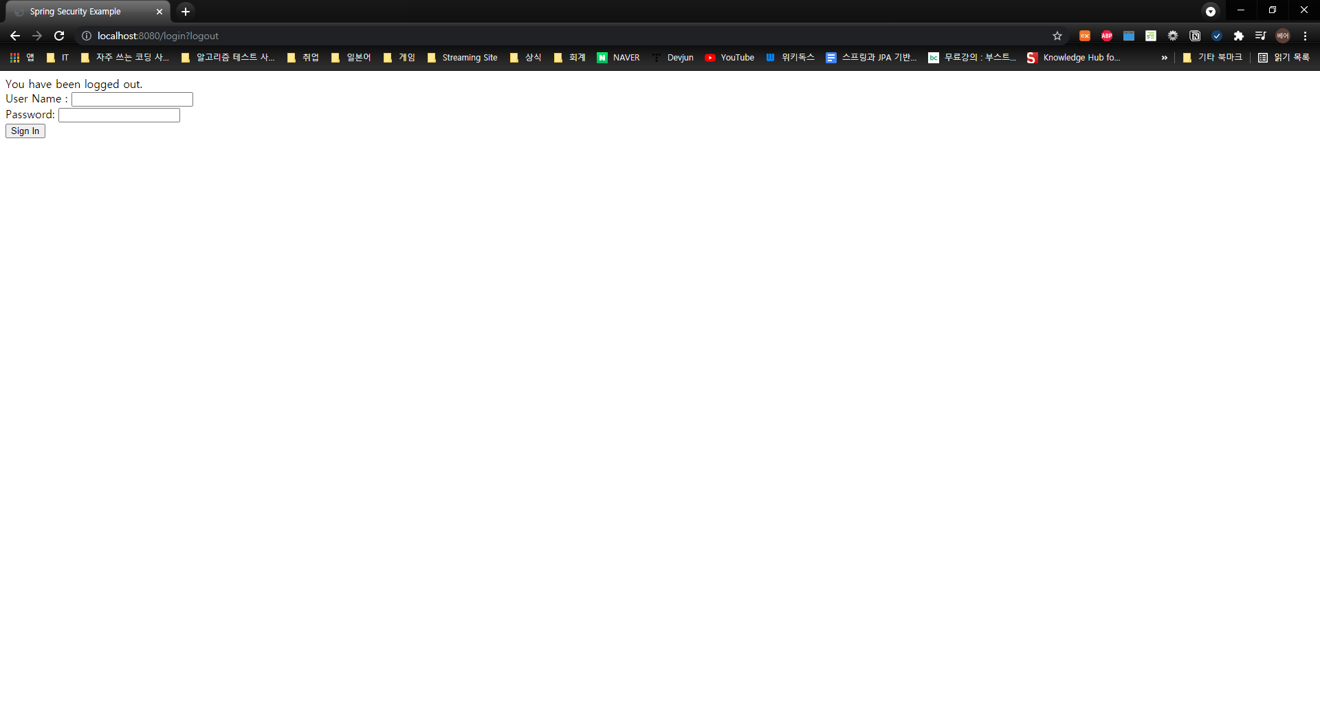 <div th:if="${param.logout}"> <!-- 타임리프로 로그아웃시 보여주는 메세지 -->