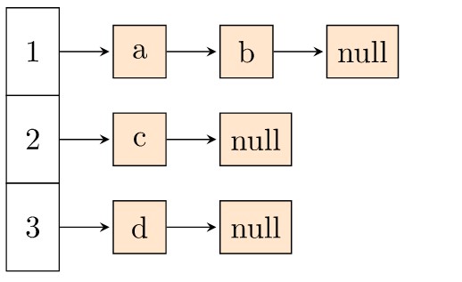 저장할 데이터의 키를 해시함수에 넣으면 배열의 한 요소를 얻게 되고, 다시 그 곳에 연결되어 있는 링크드 리스트에 저장하게 된다.