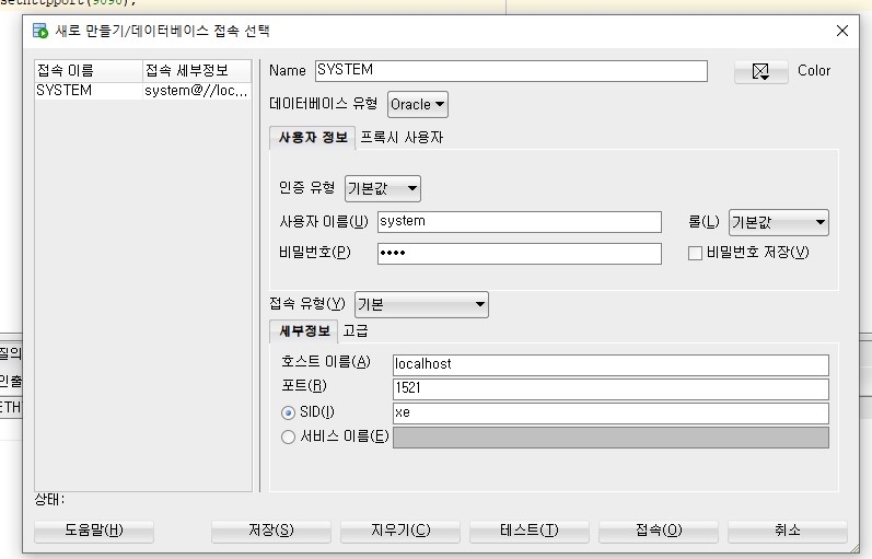 포트는 기본으로 잡혀있는 1521 포트를 사용하였다.