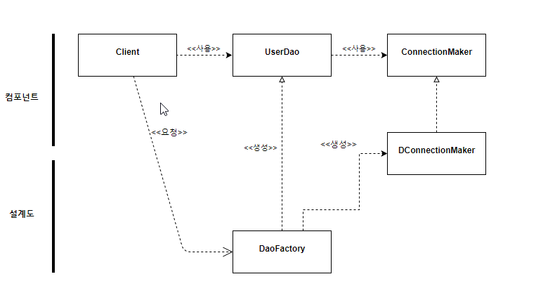 DaoFactory 분리로 애플리케이션 컴포넌트 역할을 하는 오브젝트와 애플리케이션 구조를 결정하는 오브젝트를 분리에 의의