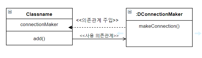 모든 DAO는 생성 시점에 ConnectionMaker 타입의 오브젝트를 컨테이너로 부터 제공받는다.