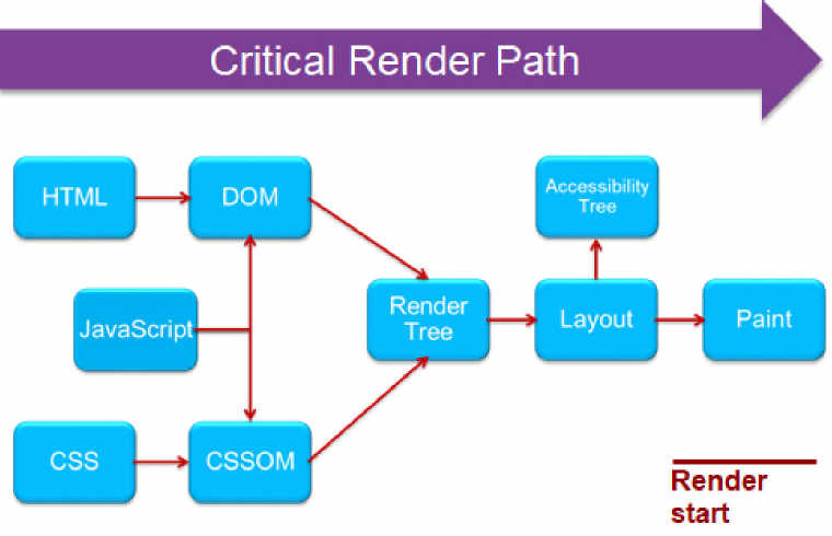 중요 렌더링 경로(Critical Render Path)는 브라우저가 HTML, CSS, Javascript를 화면에 픽셀로 변화시키는 일련의 단계이다.