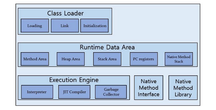 JVM은 크게 세 가지로 구성됩니다.