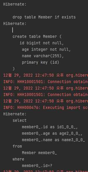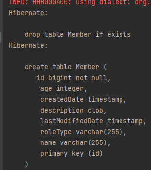 | create-drop | create와 같으나 종료시점에 테이블 DROP |