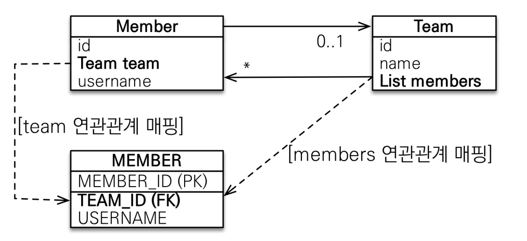 MEMBER.TEAM_ID 외래 키 하나로 양방향 연관관계 가짐 (양쪽으로 조인할 수 있다.)