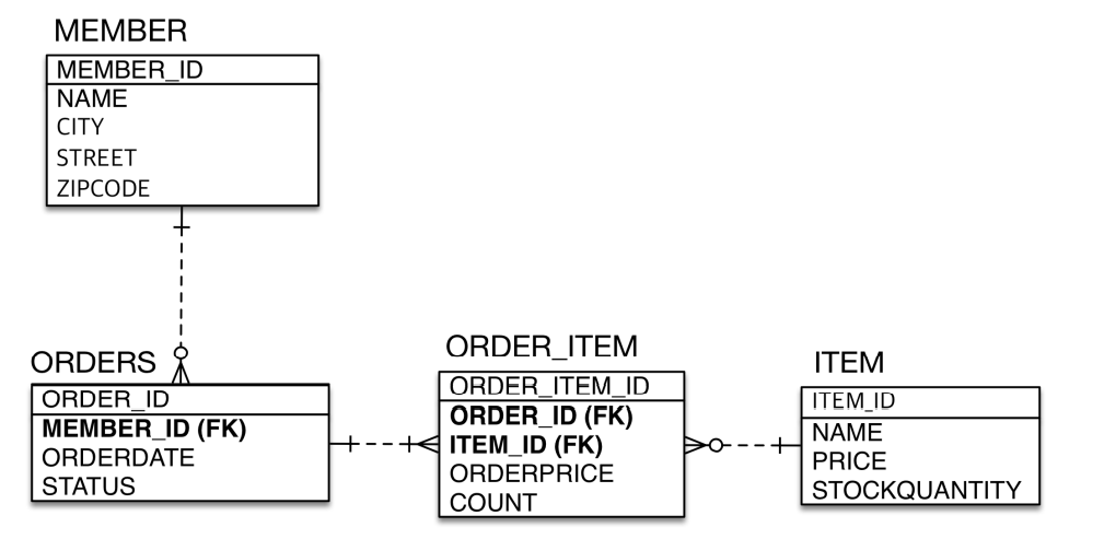 테이블은 외래 키로 조인을 사용해서 연관된 테이블을 찾는다.