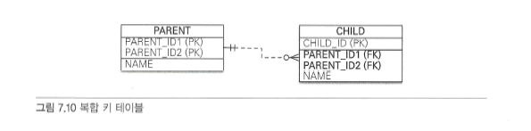 복합 키 테이블은 비식별 관계고 PARENT는 복합 기본 키를 사용한다. (객체의 상속과는 무관)