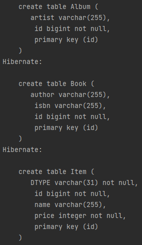 @DiscriminatorColumn // DTYPE 컬럼을 ITEM Table에 추가