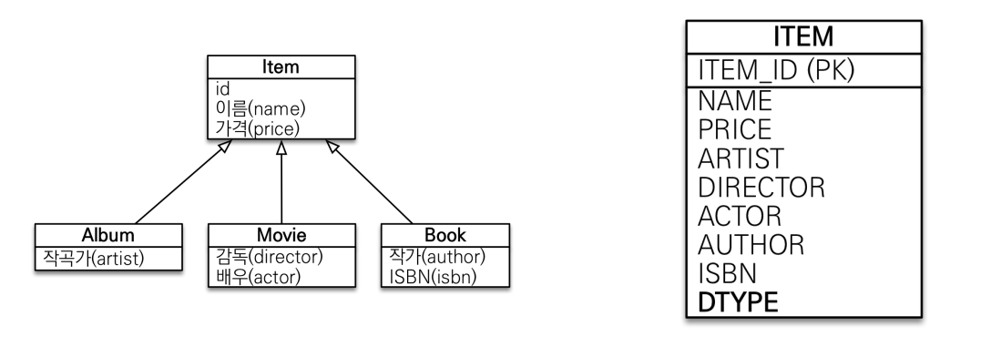- 통합 테이블로 변환 -> 단일 테이블 전략