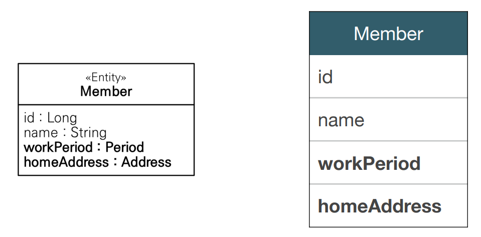 - JPA는 임베디드 타입(embedded typoe)이라 함