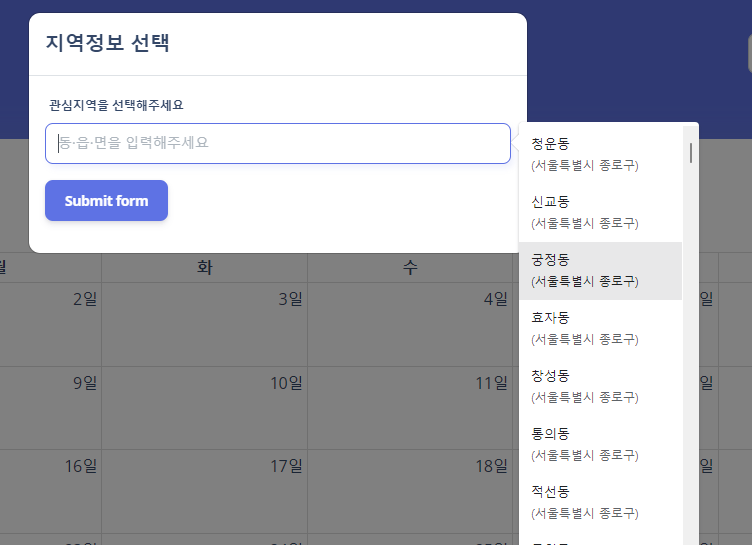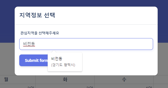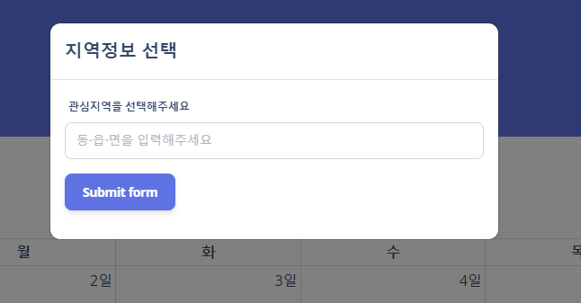 회원가입 후 지역정보를 설정하지 않은 사람에게 modal창으로 지역정보를 강제적으로 설정하려한다.