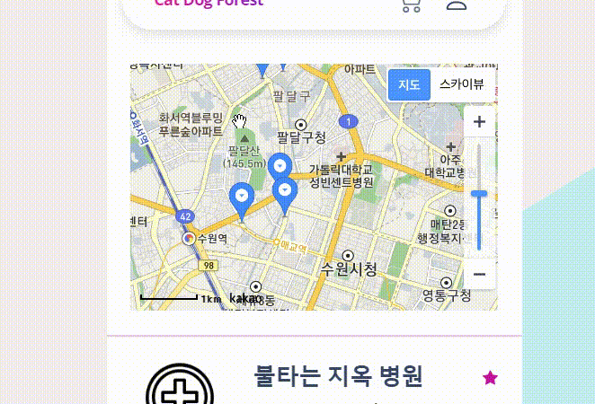 2023.03.17 - [프로젝트 정리/애완동물 종합 솔루션(CatDogForest)] - Kakao Map API with 애완동물병원 #6
