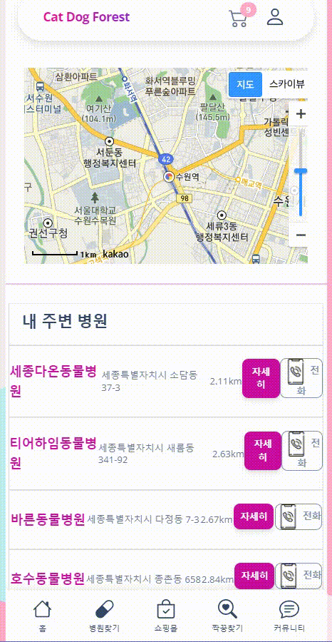 2023.03.21 - [프로젝트 정리/애완동물 종합 솔루션(CatDogForest)] - Kakao Map API with 애완동물병원 #7
