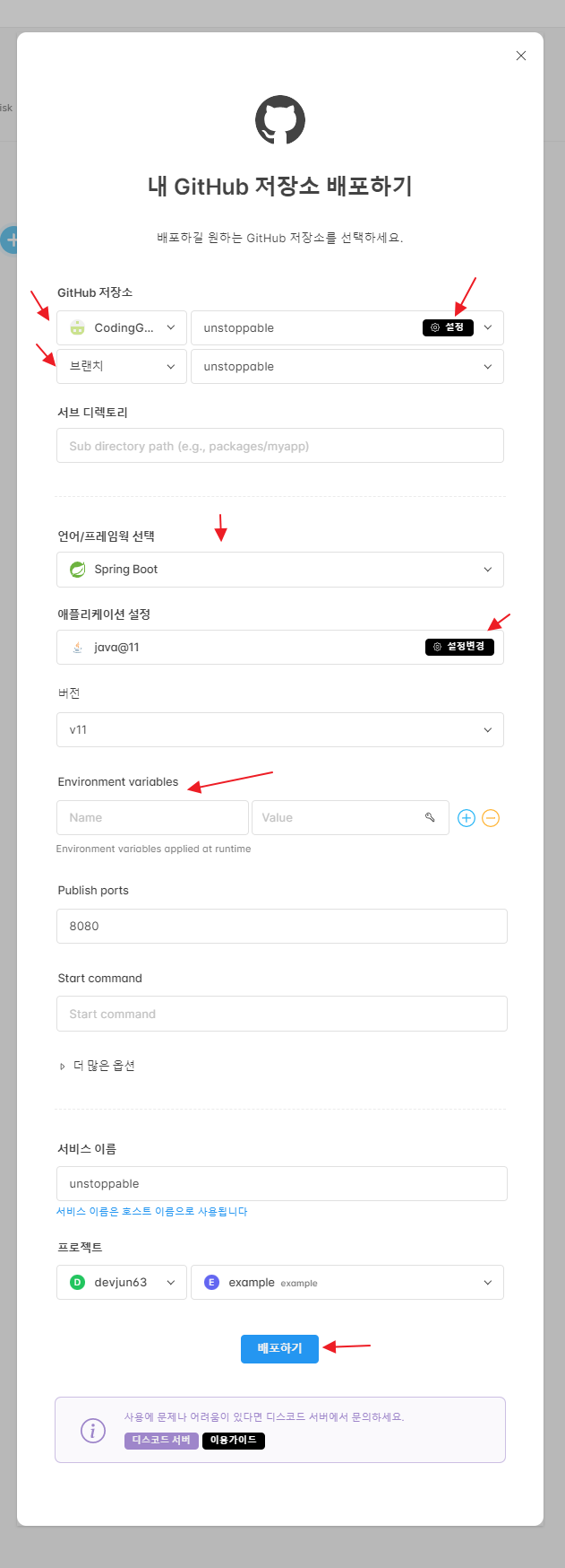 2. 배포할 서비스 선택하기 (내 Github 저장소 배포하기)