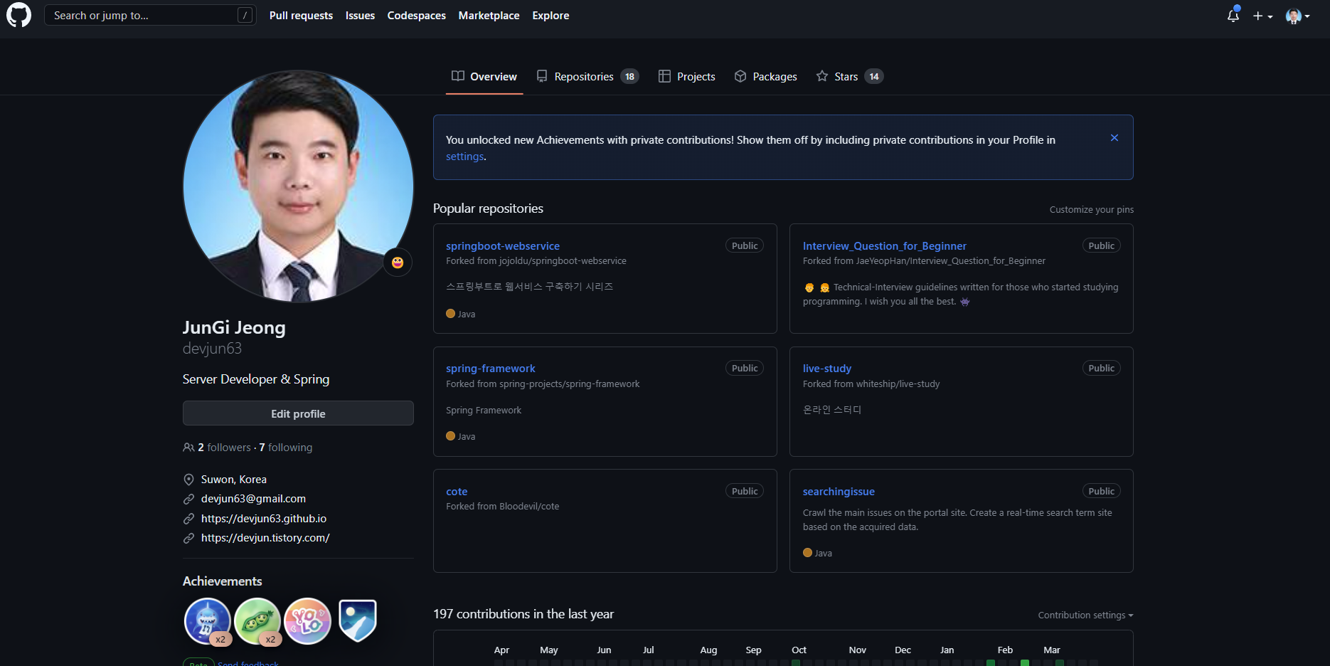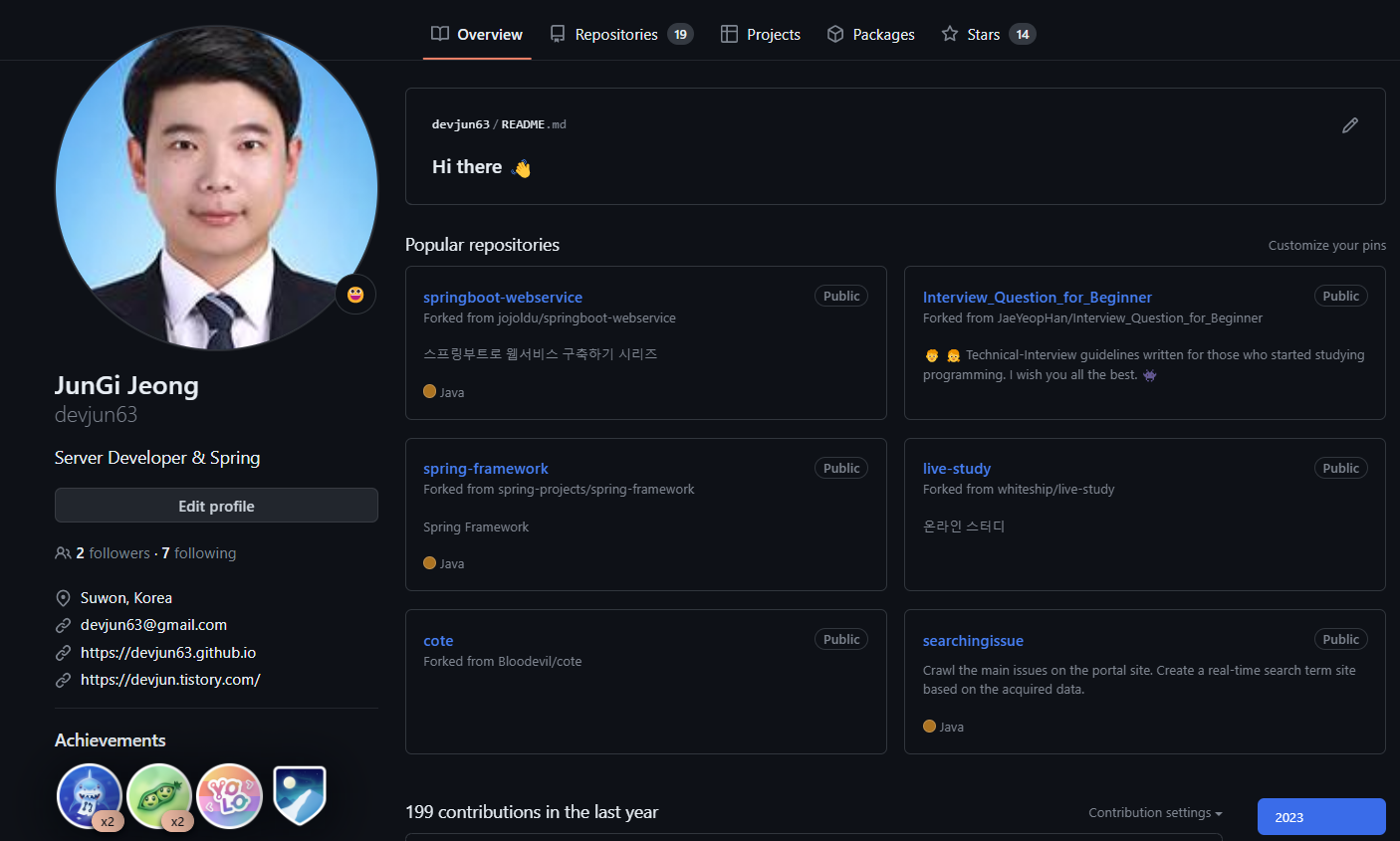 | Github Profile Readme.md로 프로필 작성하기 #2 (0) | 2023.04.07 |