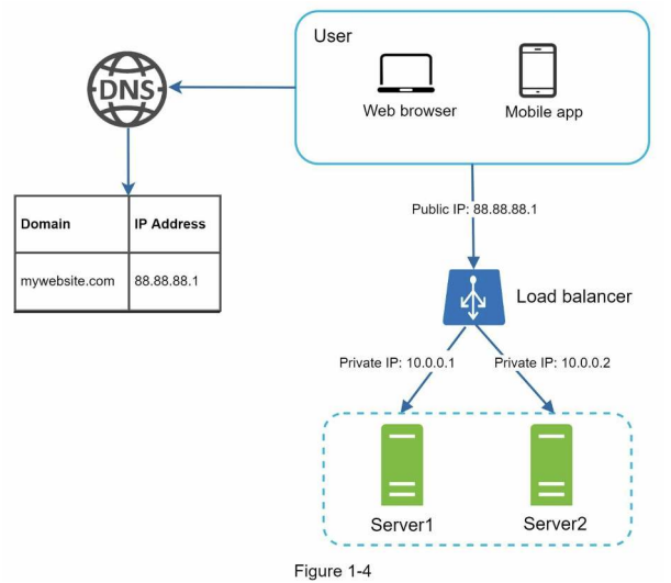 - 사용자는 DNS로부터 로드밸런서의 공개 IP주소를 받는다.