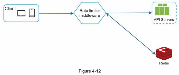 - 클라이언트가 처리율 제한 미들웨어(rate limiting middleware)에게 요청을 보냄