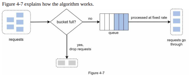 - 처리율(outflow rate): 지정된 시간당 몇 개의 항목을 처리할지 지정하는 값이다. 보통 초 단위로 표현된다.