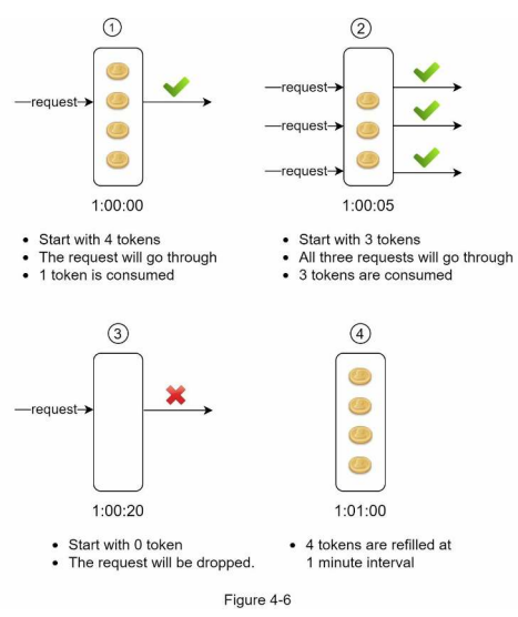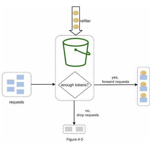 - 충분한 토큰이 있는 경우, 버킷에서 토큰 하나를 꺼낸 후 요청을 시스템에 전달한다.
