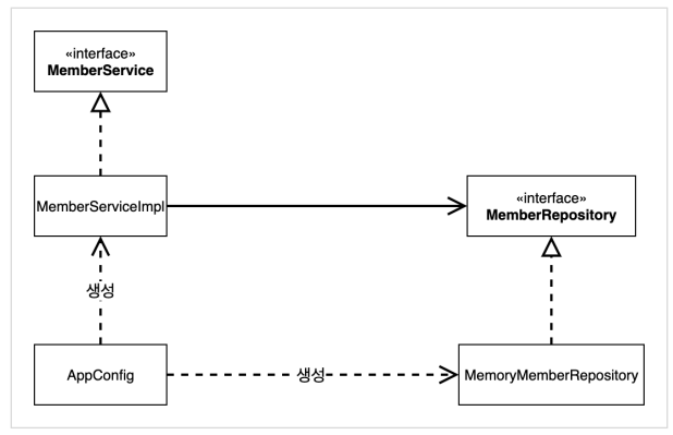 - 구현 객체를 생성하고 연결하는 책임은 AppConfig가 담당