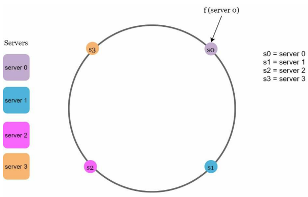 해시 함수 f를 사용해 서버 IP나 이름을 링 위의 어떤 위치에 대응 시킬 수 있다.
