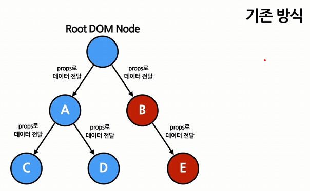 기존에는 컴포넌트의 props를 통하여 단 방향 데이터 전달되었다.