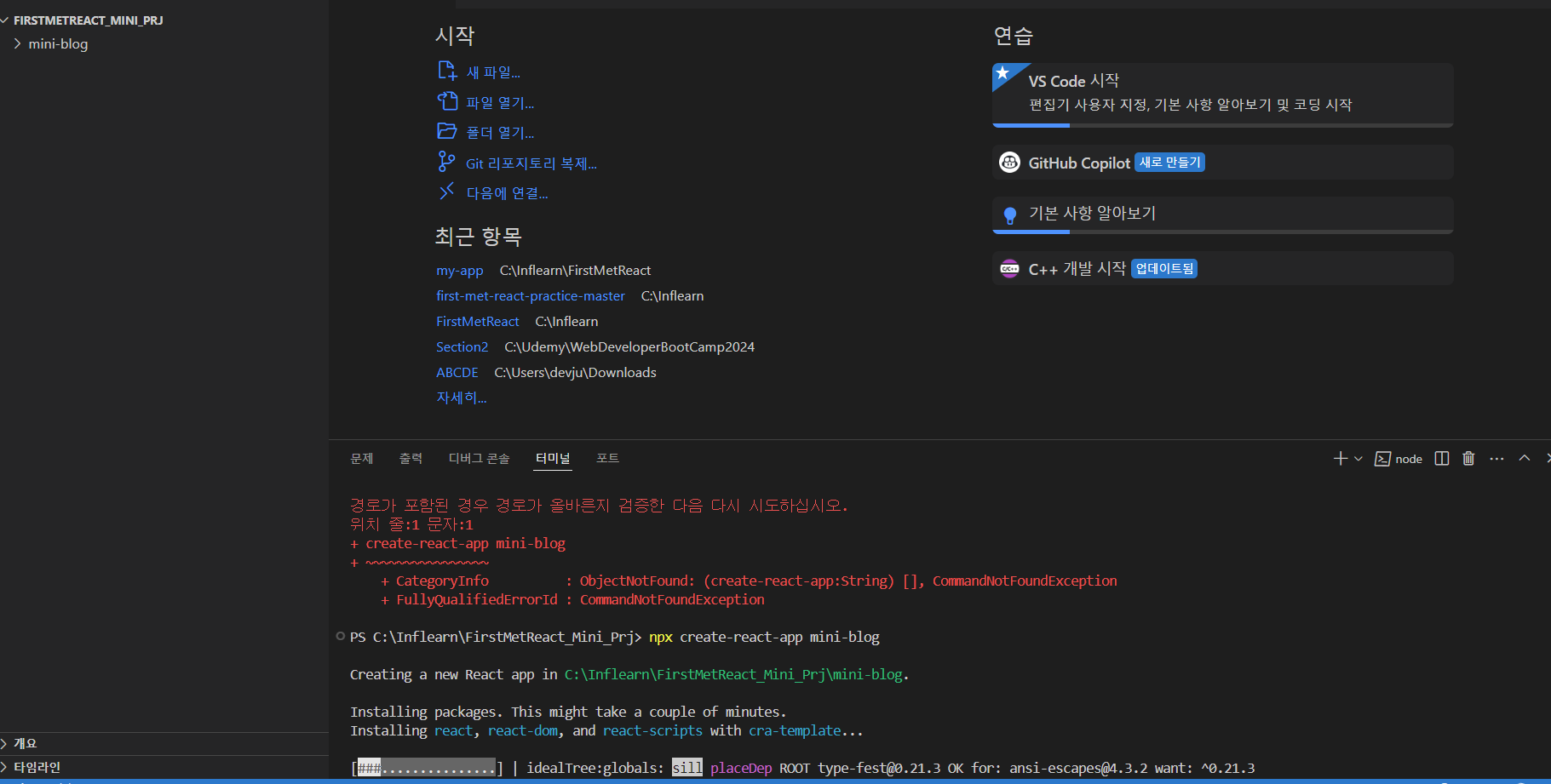 프로젝트 디렉터리에 들어가서 앱 실행하기
