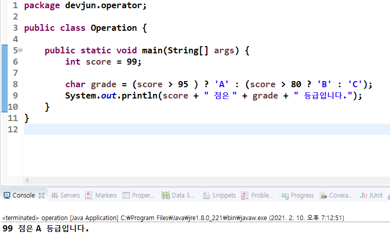 조건식 ? 값 또는 연산식 : 값 또는 연산식