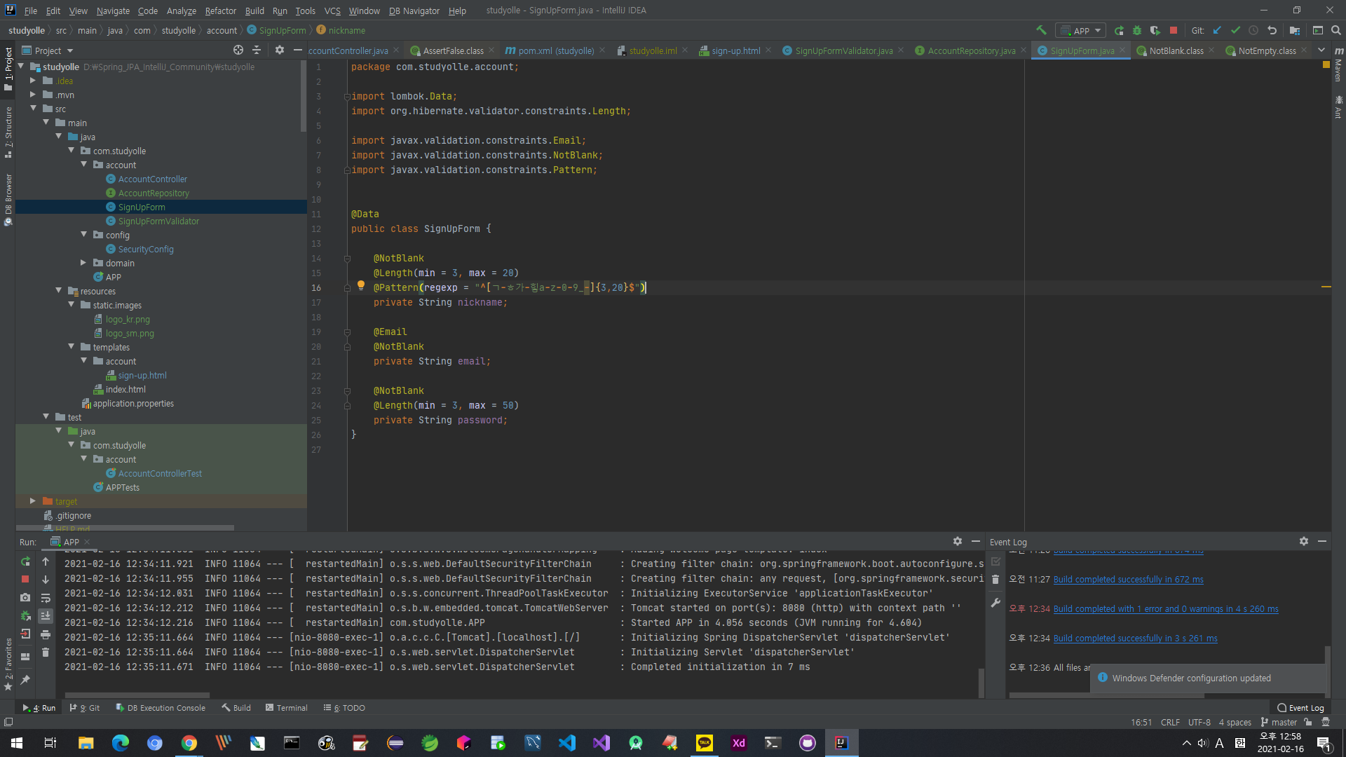 유효성 검사는 보통 객체가 생성될 때 수행되어 값이 보장된 상태에서 객체 생성을 허용하기 위한 용도로 사용한다.요청을 통해 들어오는 form 객체 (or DTO)에 대해 값의 유효성 검사(validation)하는