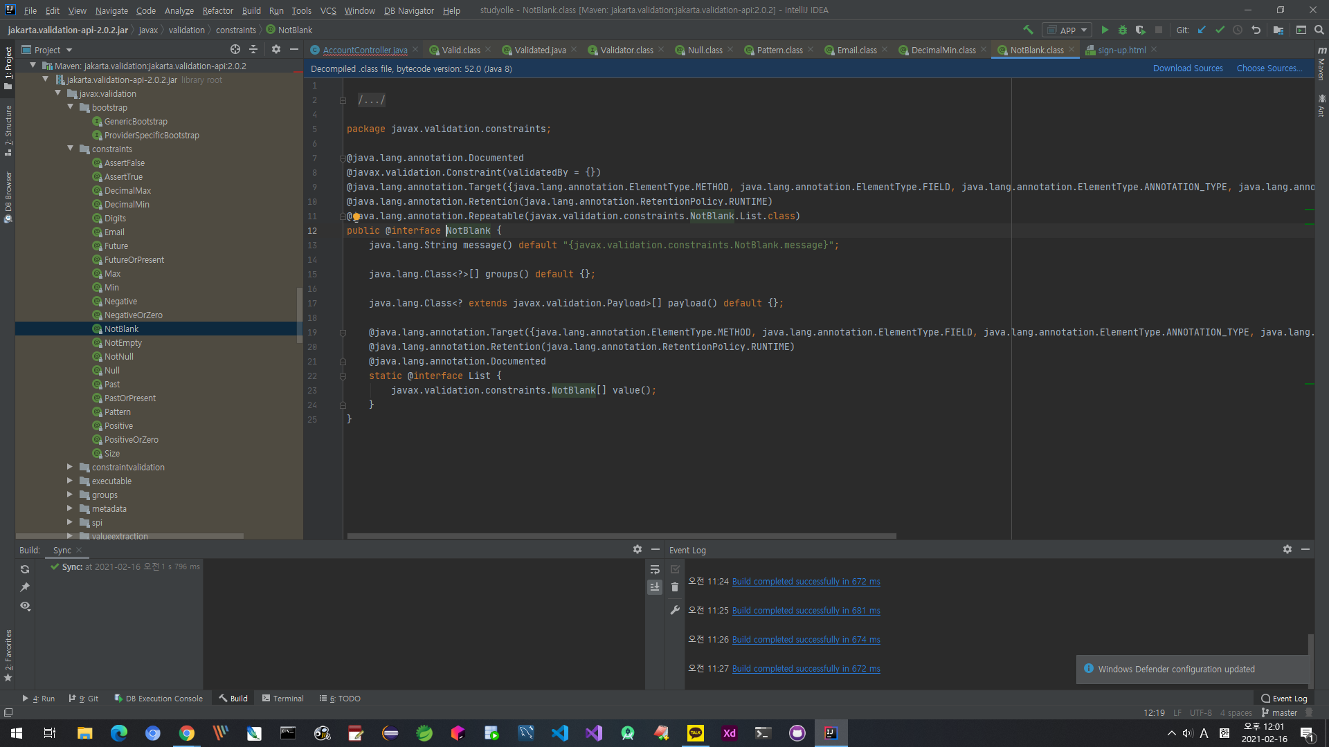 스프링에서는 서블릿 2.3표준 스펙 중 JSR 303 Validator를 확장하여 Annotation기반으로 validation을 제공한다.
