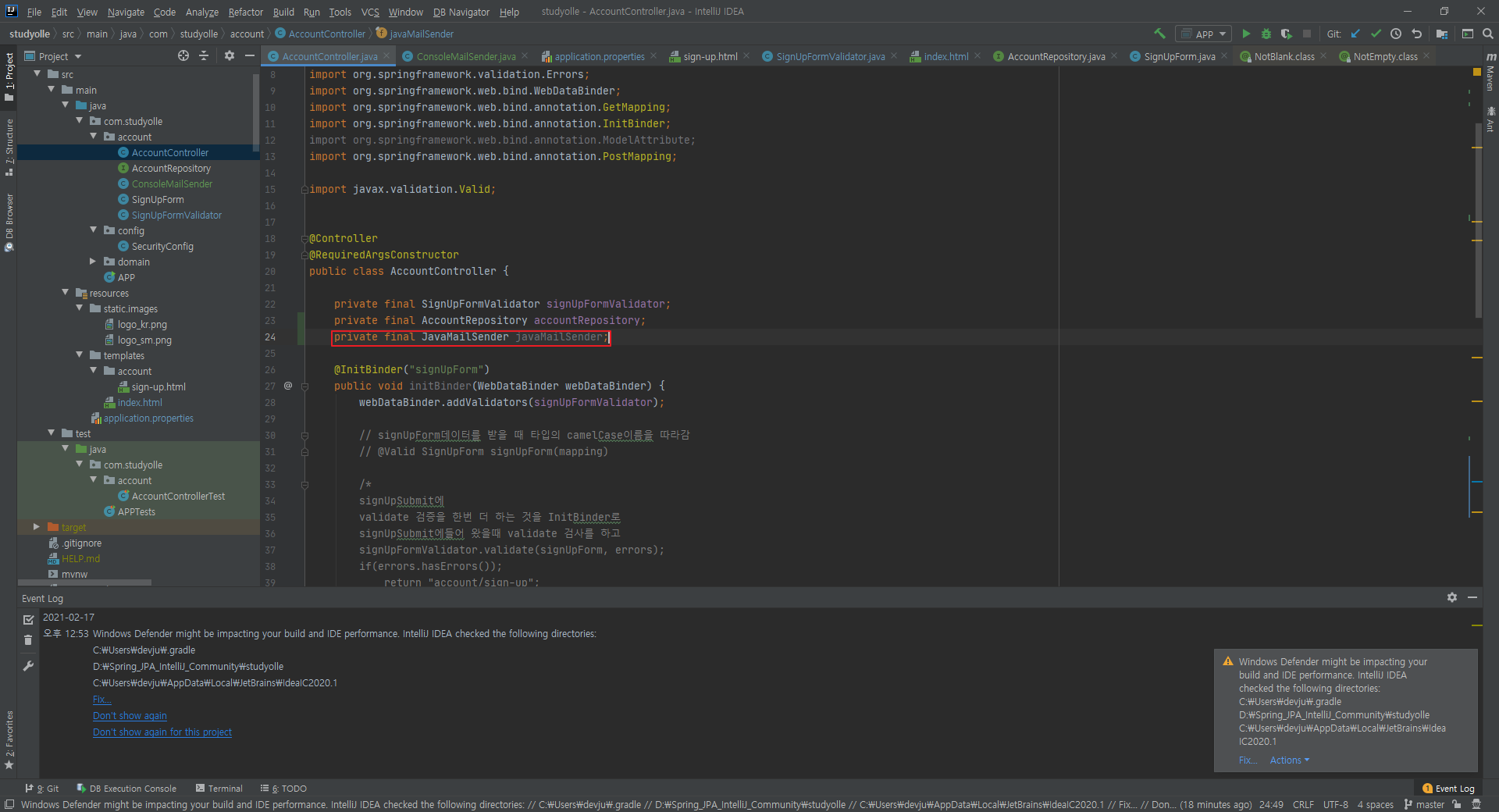 WebDataBinder로 SignUpFormValidator내부의 existsByEmail, existsByNickname을 활용