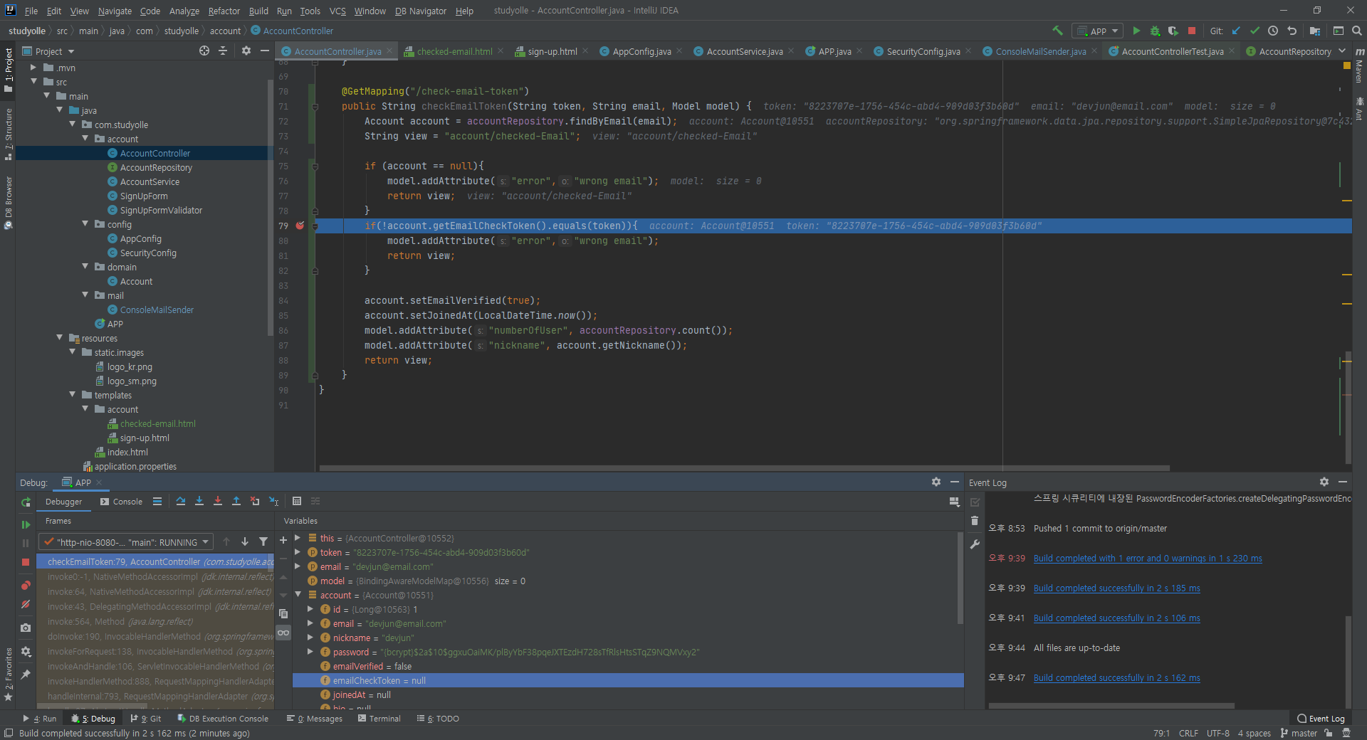 10. 회원 가입: 인증 메일 확인 · devjun63/whiteship-studyolle@0480b97