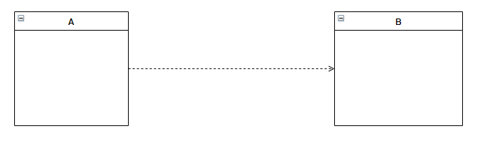 두 개의 클래스 또는 모듈이 의존관계에 있다고 말할 때는 항상 방향성을 부여해줘야 한다. 즉 누가 누구에게 의존하는 관계에 있다는 식이어야 한다. UML 모델에서는 두 클래스의 의존관계(dependency relationship)를 다음과 같이 점선으로 된 화살표로 표현한다.