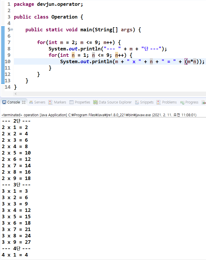 true일 경우 블록 내부의 실행문들이 모두 실행되면 증감식을 실행시킨 후 다시 조건식을 평가한다.